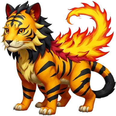Pyroar-Torracat-Luxray-Tigress-Tiger-Liger-Hybrid-Fakemon-hybrid-Creature (full body) emoji | AI Emoji Generator