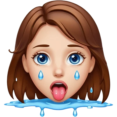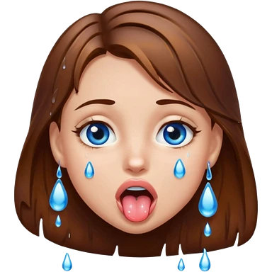 Girl with brown hair, blue eyes, a wet face and her tongue out. Can you make her face more wet emoji
