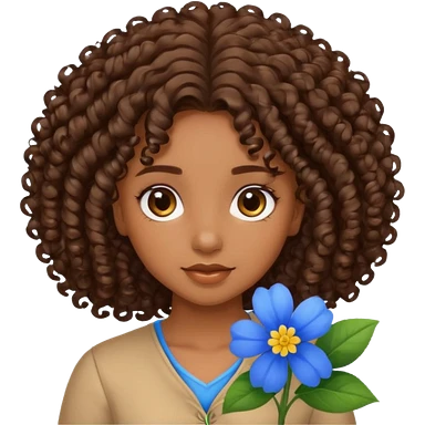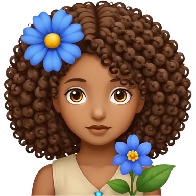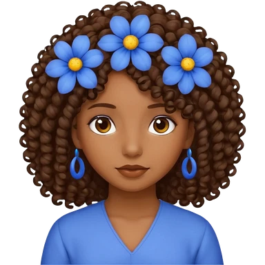 Qro uma moça morena de cabelo cacheado com uma flor azul no cabelo com o cabelo baixo emoji | AI Emoji Generator