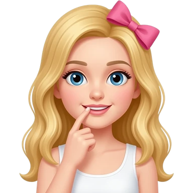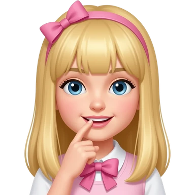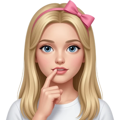 que se muerda el dedo la chica un poco mar realista el pelo rubio y largo lacio nariz perfecta y el lazo rosa el dedo un poco mas a dentro de la boca emoji | AI Emoji Generator