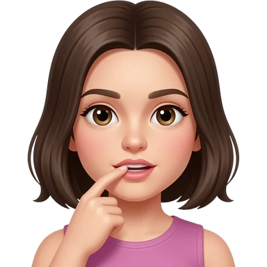 Chicas con pelo negro y corte bob haciendo que se muerde uno de sus dedos de manera picara emoji