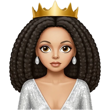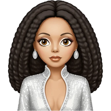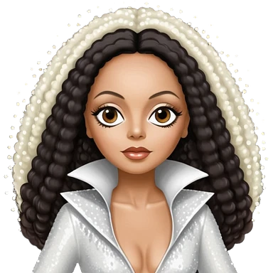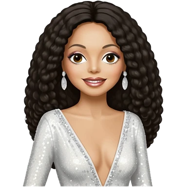 Diana Ross, Queen of Motown from Famous People with long dark brown hair, white sequin outfit emoji