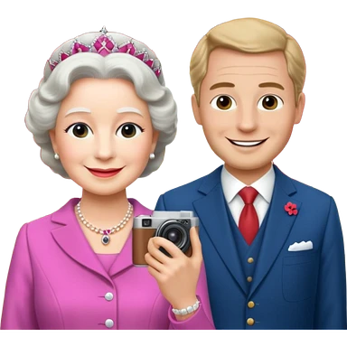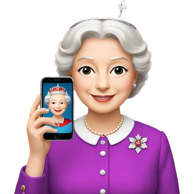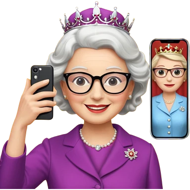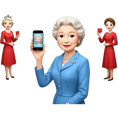 someone who's taking a selfie in a room with the wax figures of the queen elisabeth the II emoji