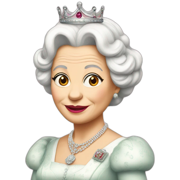 Queen Elizabeth II emoji, wearing a crown and pearls, smiling emoji