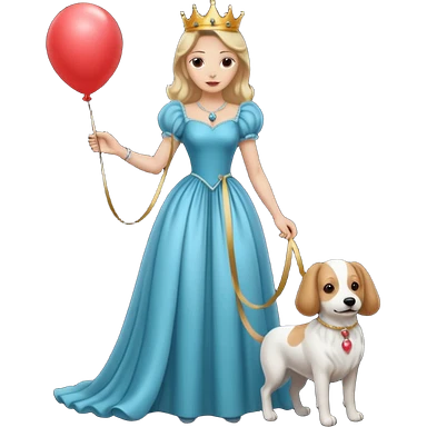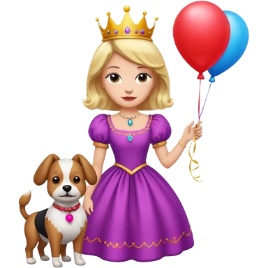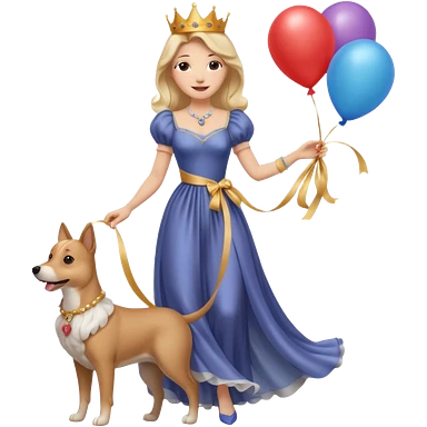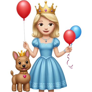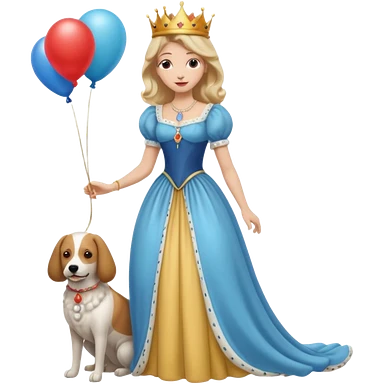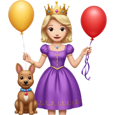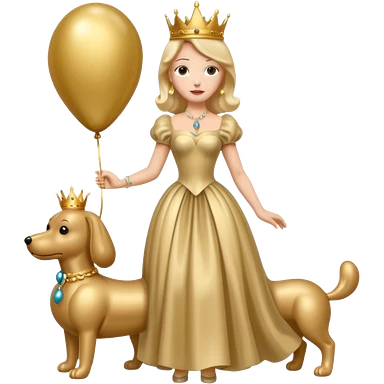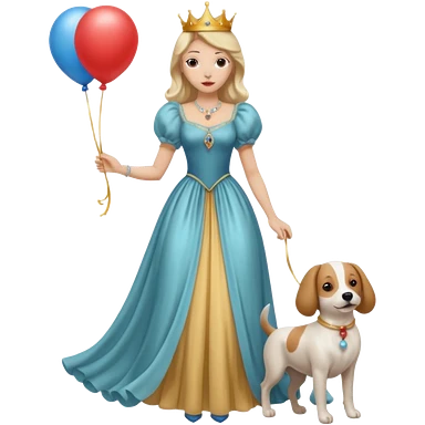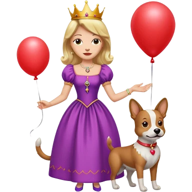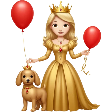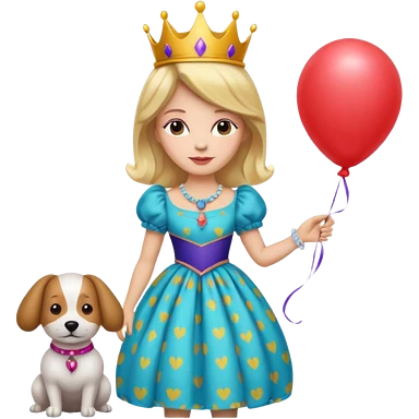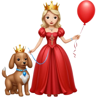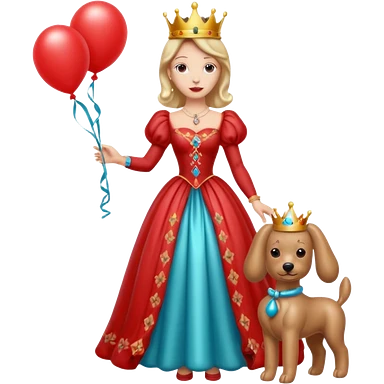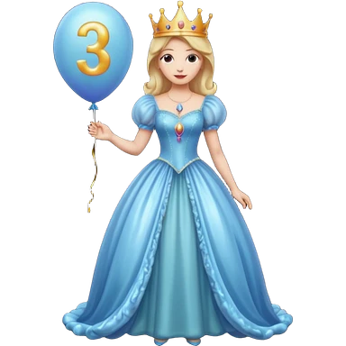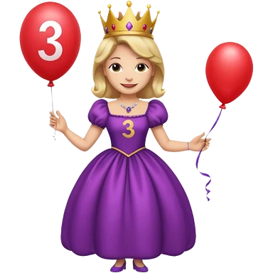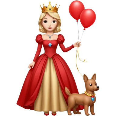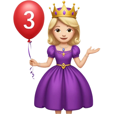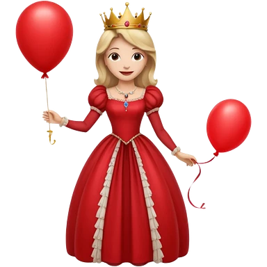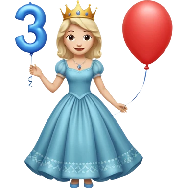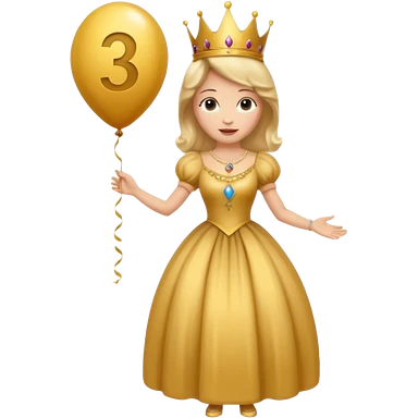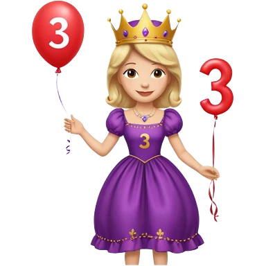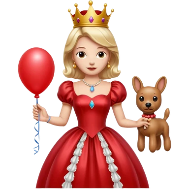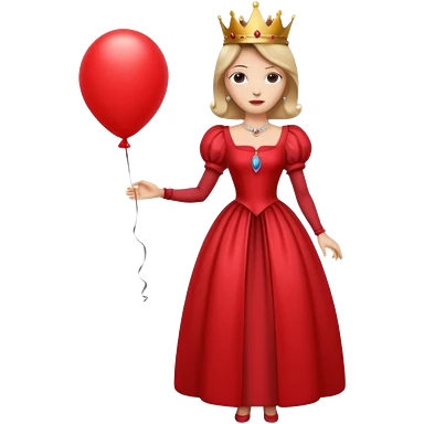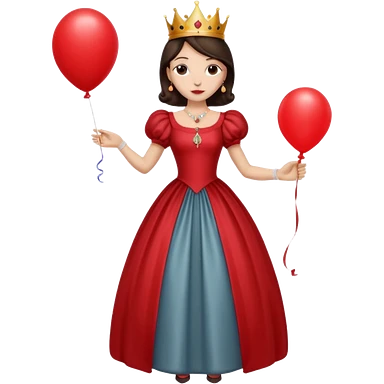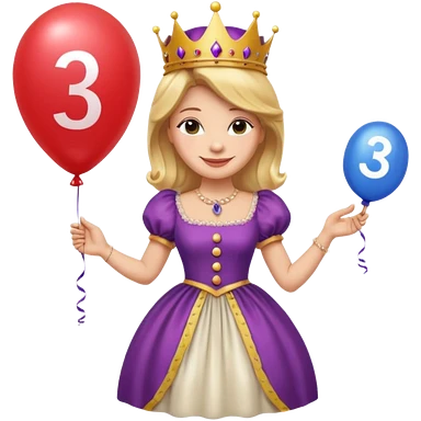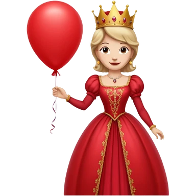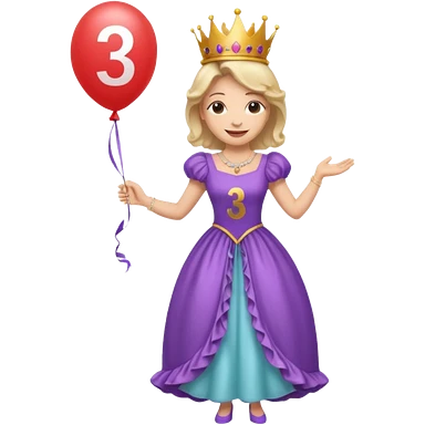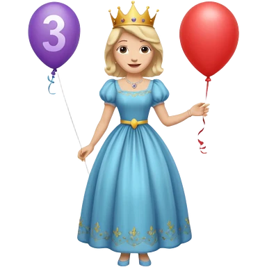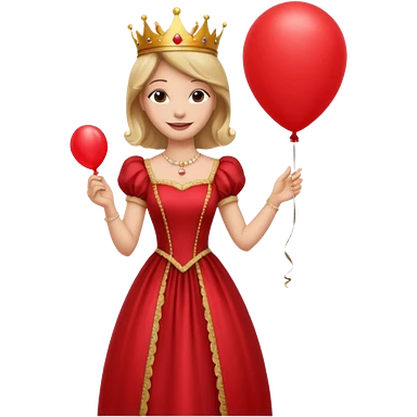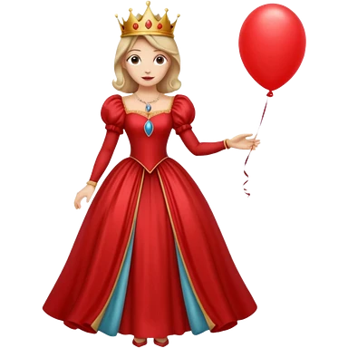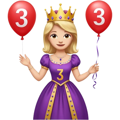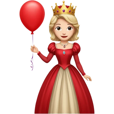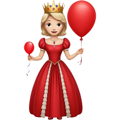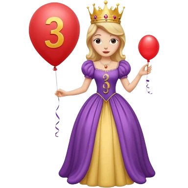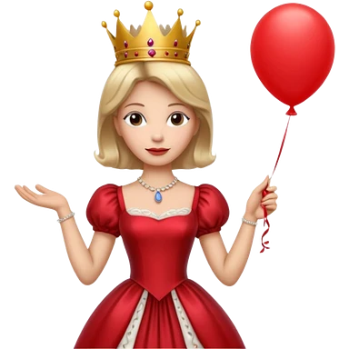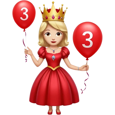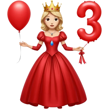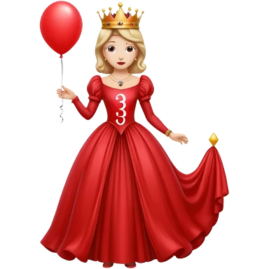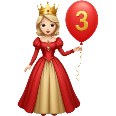 queen wearing dress, holding balloon in shape of number 3 emoji