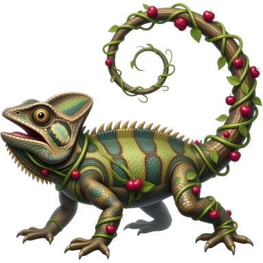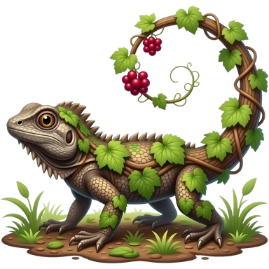 Bramblisk A vine-covered lizard with bark-like scales and bright berry clusters on its tail. It blends into forest floors and attacks with whipping vines. emoji
