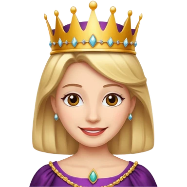 White silver straingt Long Haired Women, Queen with crown — soft expression emoji