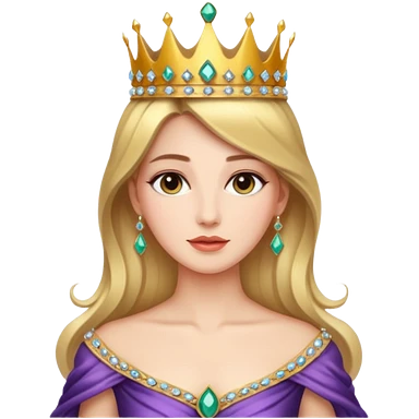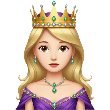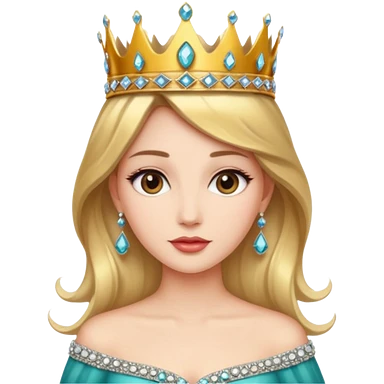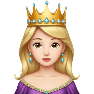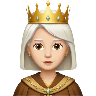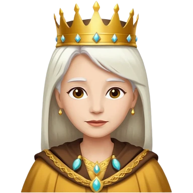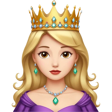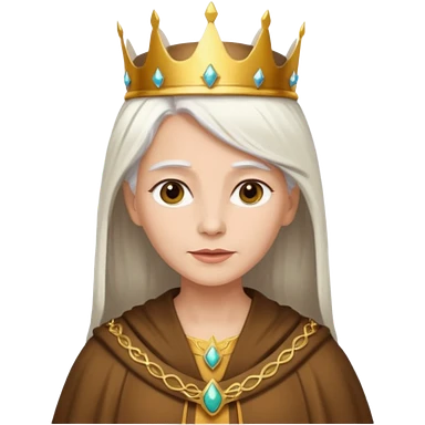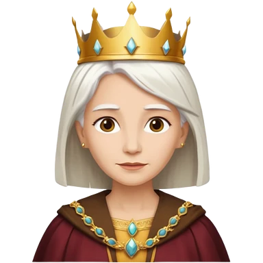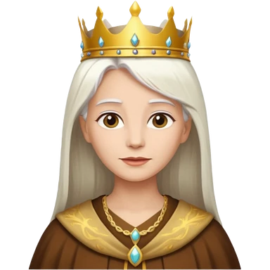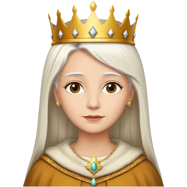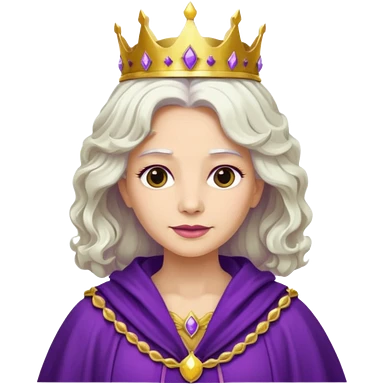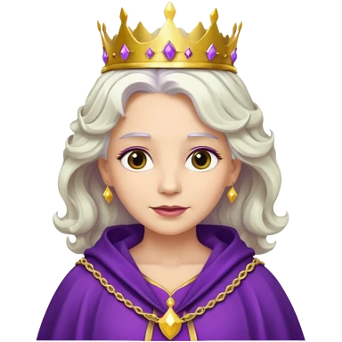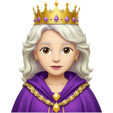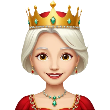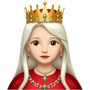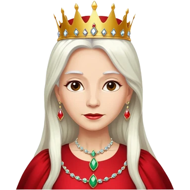 Queen with long white hair – jeweled golden crown, red dress. emoji | AI Emoji Generator