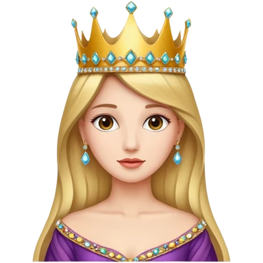 Queen, brown long hair, golden crown with pink diamonds emoji