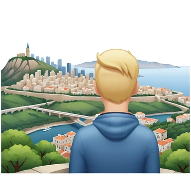quelqu'un qui admire la vue depuis un point panoramique avec une ville en contrebas emoji | AI Emoji Generator