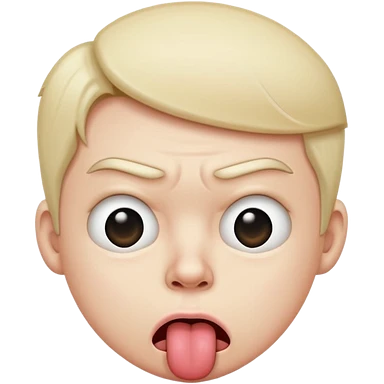 Quelqun de brun au yeux bleu qui tire la langue sur le coter de la bouche et regarde mal emoji | AI Emoji Generator