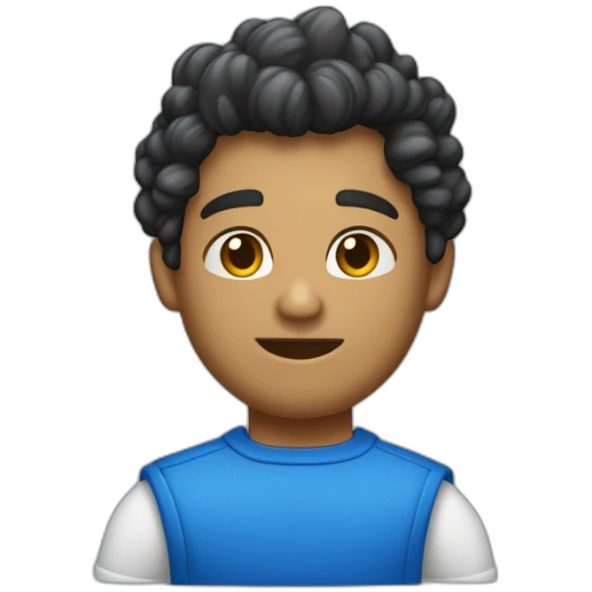 quero um emoji de um cara de cabelo cacheado curto musculoso com uma camisa azul escrita "tommy" emoji | AI Emoji Generator