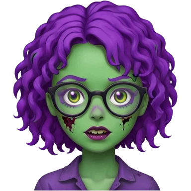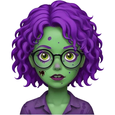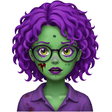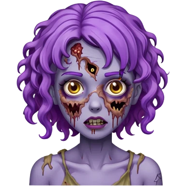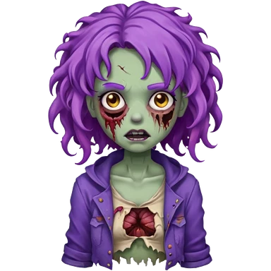 Quero uma imagem de uma garota zumbi com cabelo cacheado roxo emoji | AI Emoji Generator