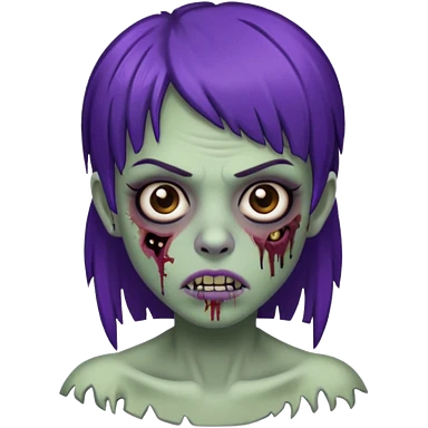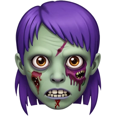 Quero uma zumbi com franja vegana piercing na sombrancelha no lado esquerdo e na boca e no nariz no lado direito cabelo castanho/preto com mechas roxas emoji | AI Emoji Generator
