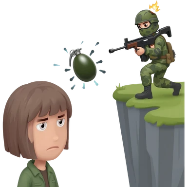 A sad emoji face watching a grenade bounce harmlessly past an enemy and off a cliff. emoji