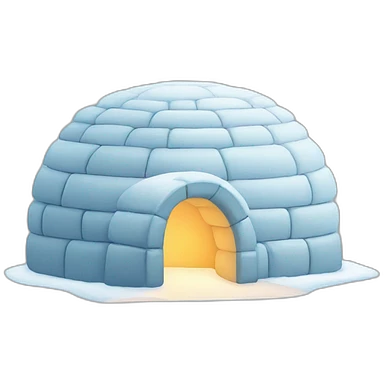 A traditional snow igloo on a vast snowy plain under a clear blue sky. Soft sunlight casts gentle shadows across the snow. The igloo has a small entrance tunnel and compacted snow blocks forming its dome. Realistic Arctic environment, calm winter feeling. Negative: Background transparent. emoji
