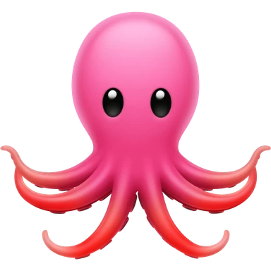 Un pulpo caricaturesco de frente, con cabeza grande y redonda rosada, dos ojos negros con brillo blanco, sin boca visible, parte inferior rojo-rosada y tentáculos curvados abiertos hacia los lados. 🐙 emoji