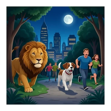 quiero que en un pueblo este un leon y un perro andando porel pueblo y que las persoans esten en las acsas cerrradas con madera para que no entren y que no hayan personas en la calle la puertas cerradas con madera y la gente con miedo emoji | AI Emoji Generator