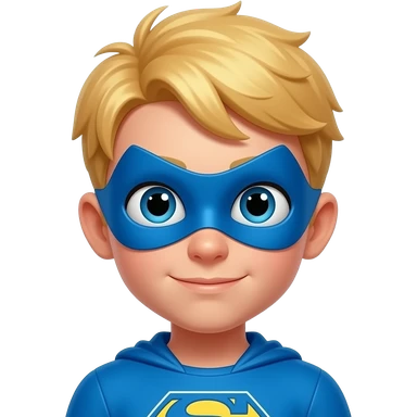 quiero que me hagas a un superheroe con el pelo rubio mascara azul i con un traje azul que sea un niño emoji