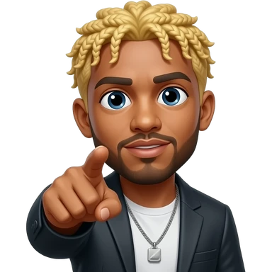 Un cantante de reggaeton güero, señalando hacia el frente, como si dijera que te está viendo, emoji