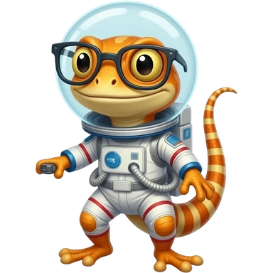 Quiero un diseño de gheco listo para ir al espacio color naranja con gafas y muy rebelde è irreverente emoji