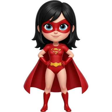 quiero que me hagas a una superheroe con el pelo negro mascara roja i con un traje rojo que sea una niña cuerpo entero emoji