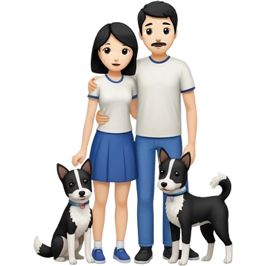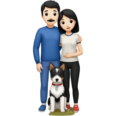 Quiero una pareja la mujer con el pelo castaño y el hombre con el color apenas moro hito con un perro Fox terrier blanco con gris emoji | AI Emoji Generator