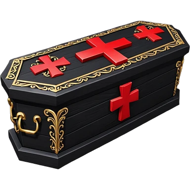 Gothic Victorian black coffin with a Red Cross on it emoji