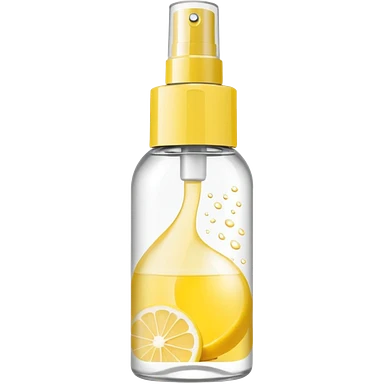 "QUO" brand womens body mist, transparent yellow hue bottle with white cap emoji