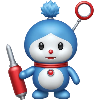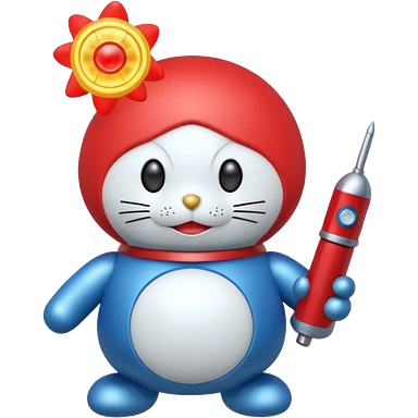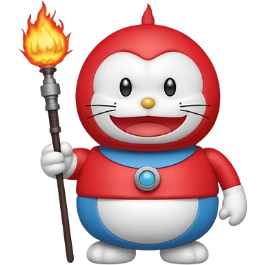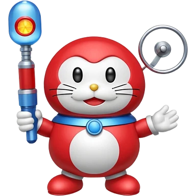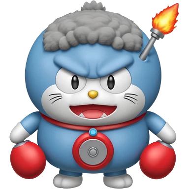 Red mad doraemon plush holding a nuke button emoji