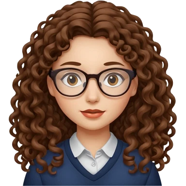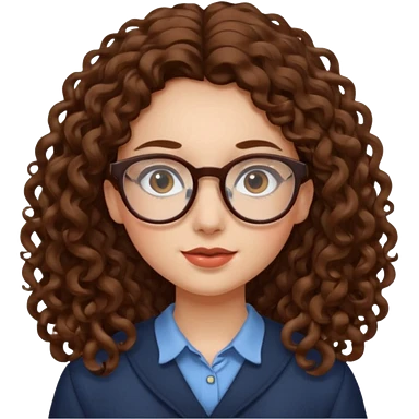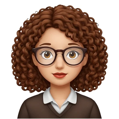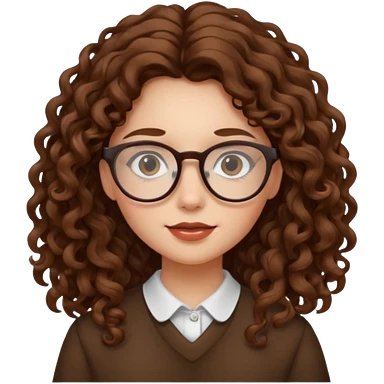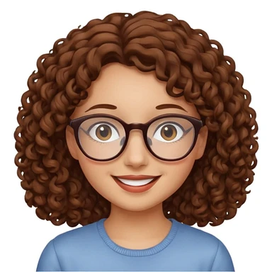Rapariga, com óculos, cabelo castanho, aos caracóis, comprido emoji