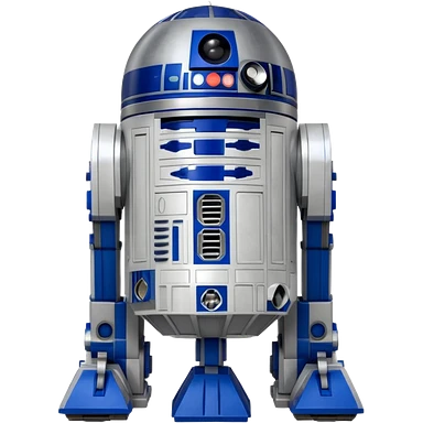 R2-D2 with a humanface (blue eyes and brown hair) emoji | AI Emoji Generator