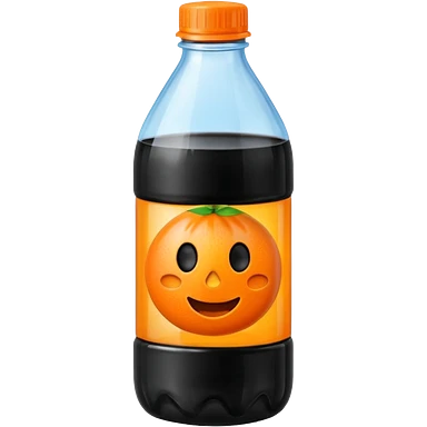 Create a drink in a plastic bottle with a black liquid named Kofola and orange emoji