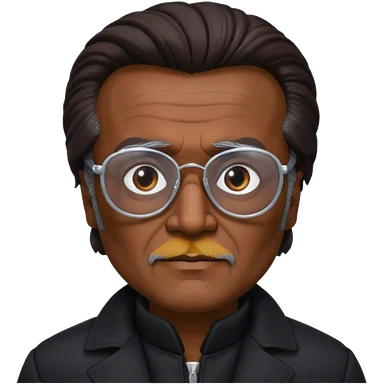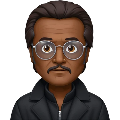 rapariga, olhos verdes escuros, rosto retangular, cabelos muito compridos aos caracóis, com óculos emoji