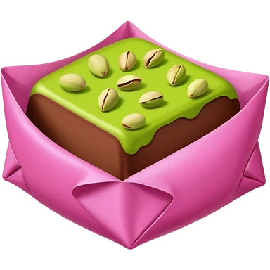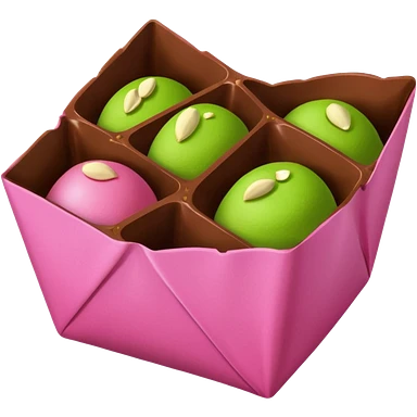bitten chocolate in a pink wrapper. chocolate filling - pistachio paste green emoji