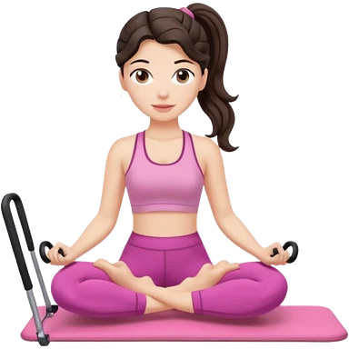 european white woman with dark wavy hair in ponytail using a pink set doing pilates emoji