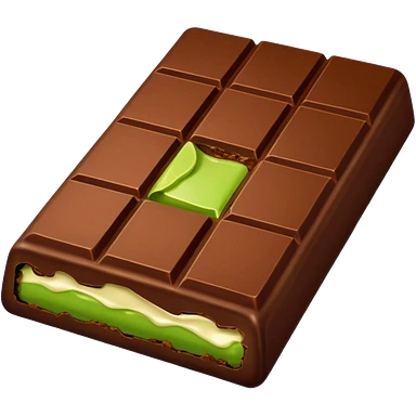 a half-eaten chocolate bar. chocolate filling - pistachio paste green emoji