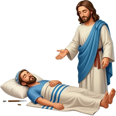 A Jewish man from ancient Bible times wakes from the dead with Jesus standing near by emoji