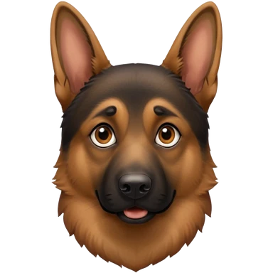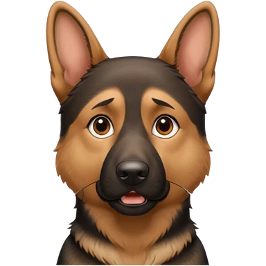 Sitting German shepherd with one floppy ear and one ear up emoji