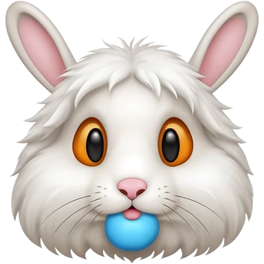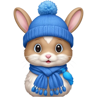 Rabbit, wearing a hat with pompom and a scarf (both blue) emoji