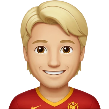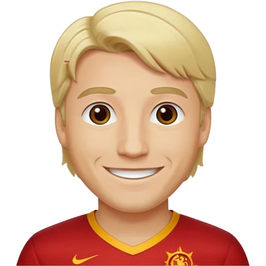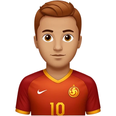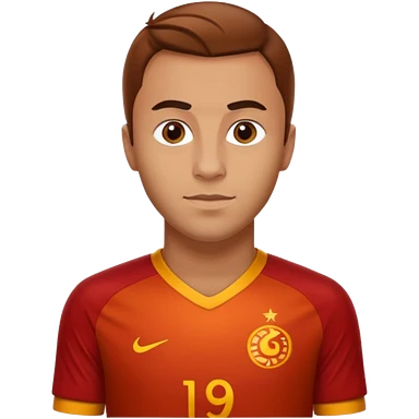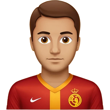 Create an emoji character of Mauro Icardi, wearing a Galatasaray FC football kit. The character is celebrating a goal with his classic pose, hands behind his ears. He has a confident and playful expression, capturing Icardi’s trademark celebration. The Galatasaray kit is yellow and red, with the team’s logo on the chest. The design should be cartoonish and bold, with vivid colors, making the character dynamic and full of energy. The background should be simple, focusing on Icardi's celebration. emoji