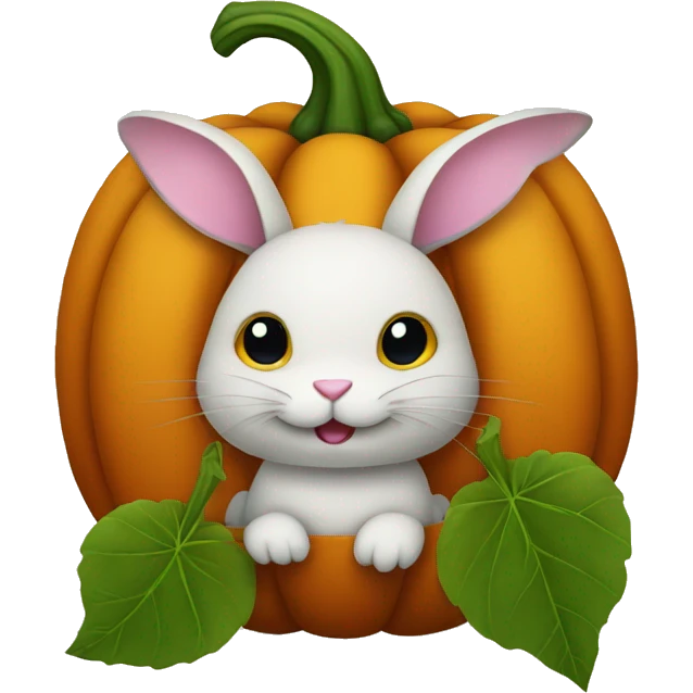 Rabbit in a pumpkin with leaves emoji | AI Emoji Generator