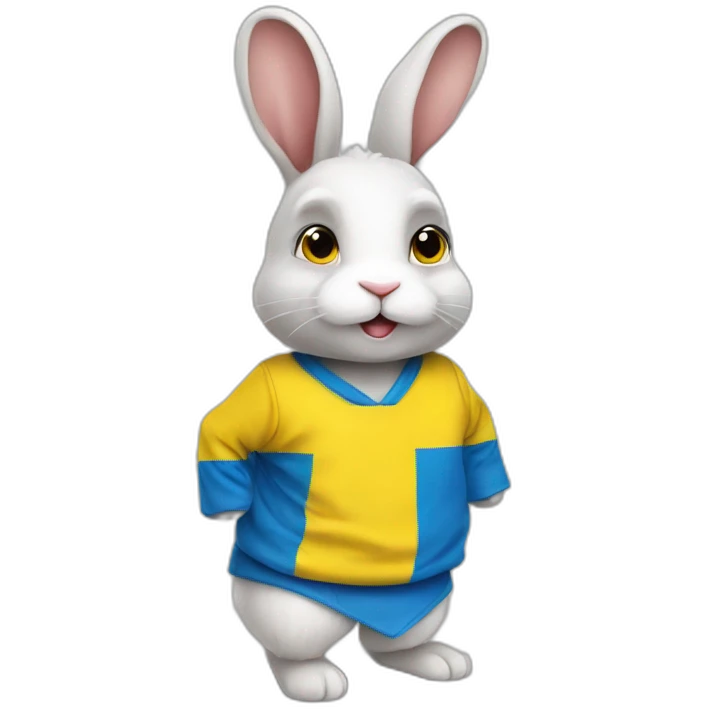 A rabbit in a suit in the color of the Ukrainian flag emoji