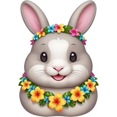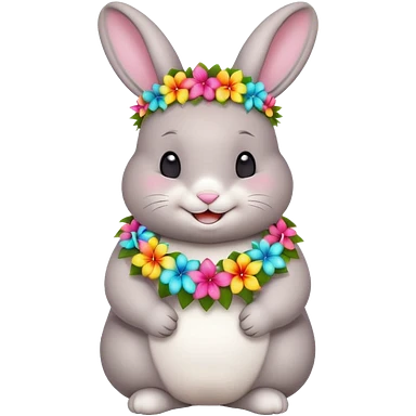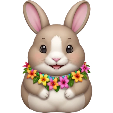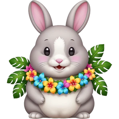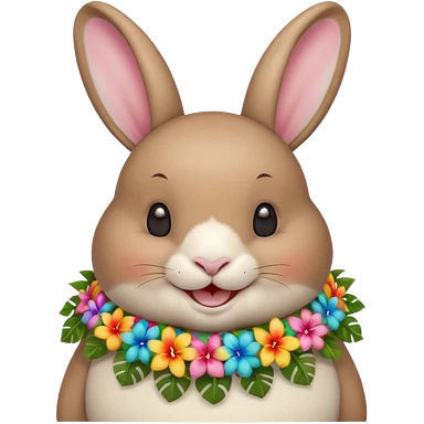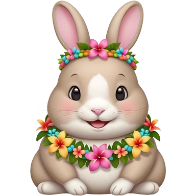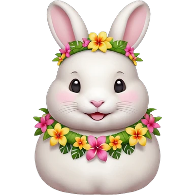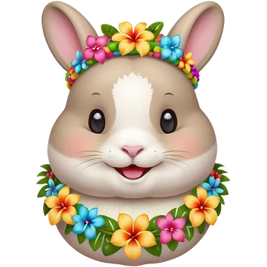 A chubby rabbit with a colorful tropical lei, smiling sweetly. emoji