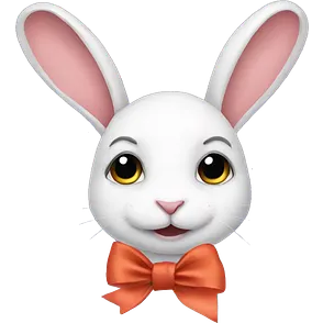 a cute white bunny with pink blush and a pink ribbon on the white rabbit's head emoji