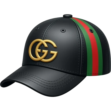 Casquette Gucci noire vu de profile avec les bandes verte et rouge sur le coter de la Cassquette horizontalement emoji