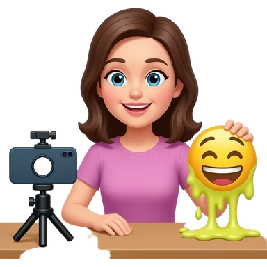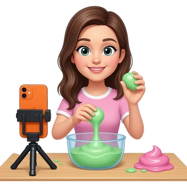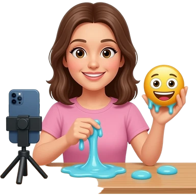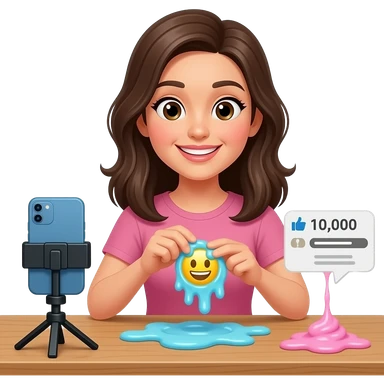 An women is making live about slime the phone is in the table and she gets 10,000 likes and coments and she is playing with taba squishy emoji emoji