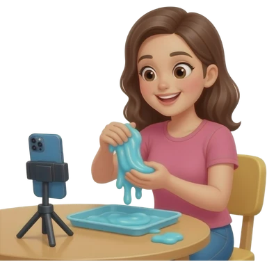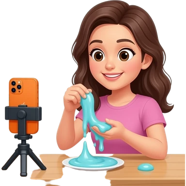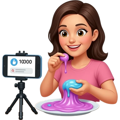 An women is making live about slime the phone17 is in the table and she gets 10,000 likes and coments and she is playing with taba squishy emoji emoji