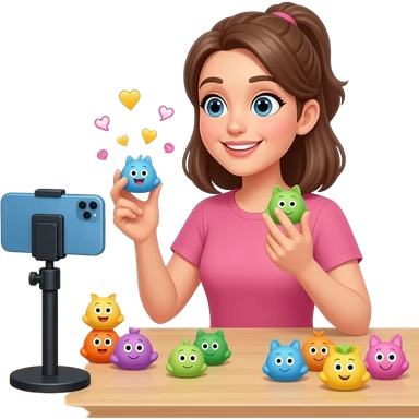 An women is making live about taba squishys the phone is in the table and she gets 10,000 likes and coments and she is playing with taba squishy emoji emoji