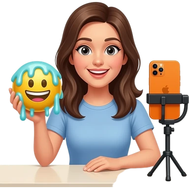 An women is making live about slime the phone17 pro max orange color is in the table and she gets 10,000 likes and coments and she is playing with taba squishy emoji emoji
